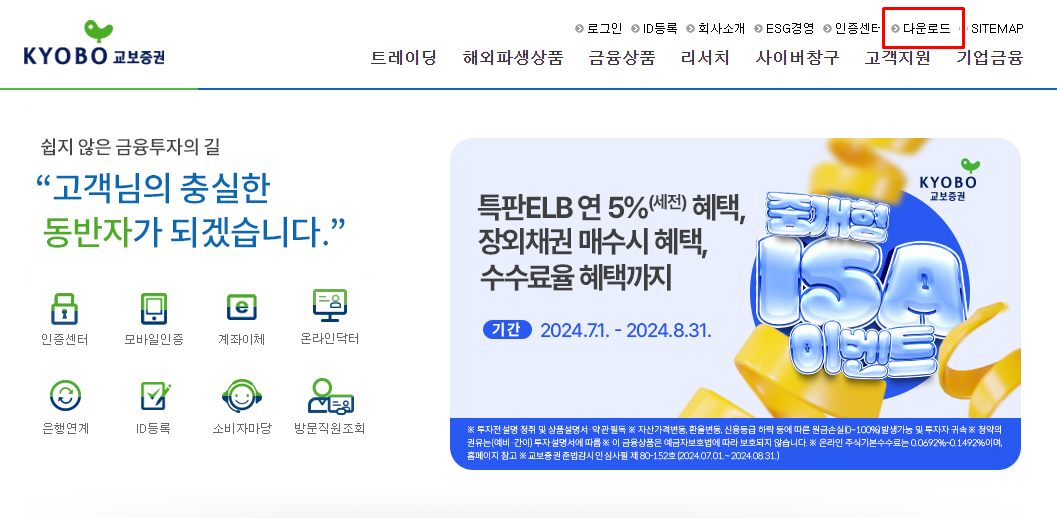 교보증권 HTS 및 MTS 다운로드 설치 방법