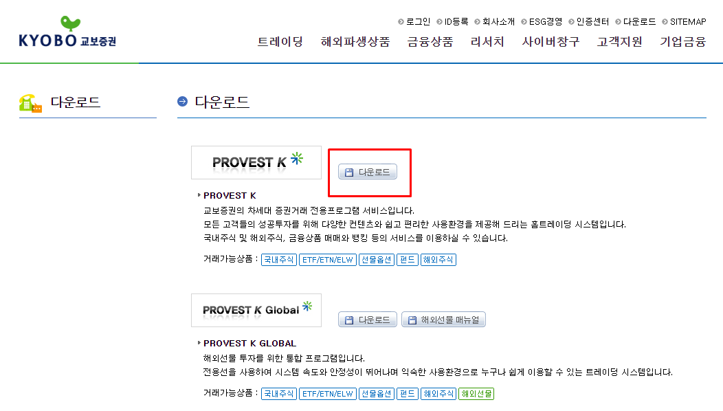 교보증권 HTS 다운로드 바로가기(PROVEST K)