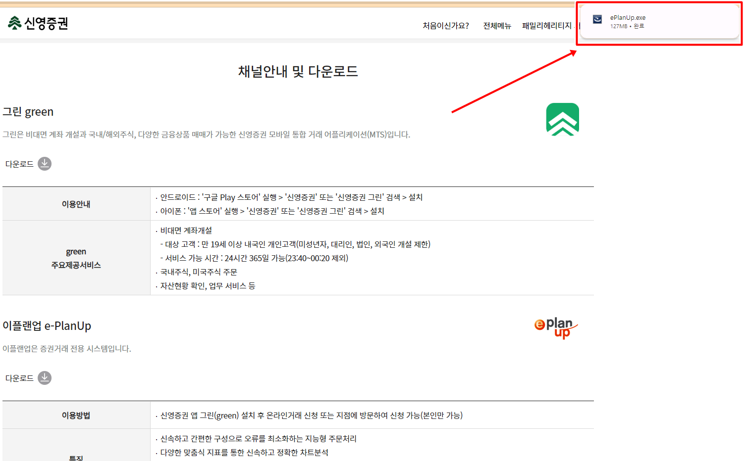 신영증권 HTS 이플랜업 설치 바로가기