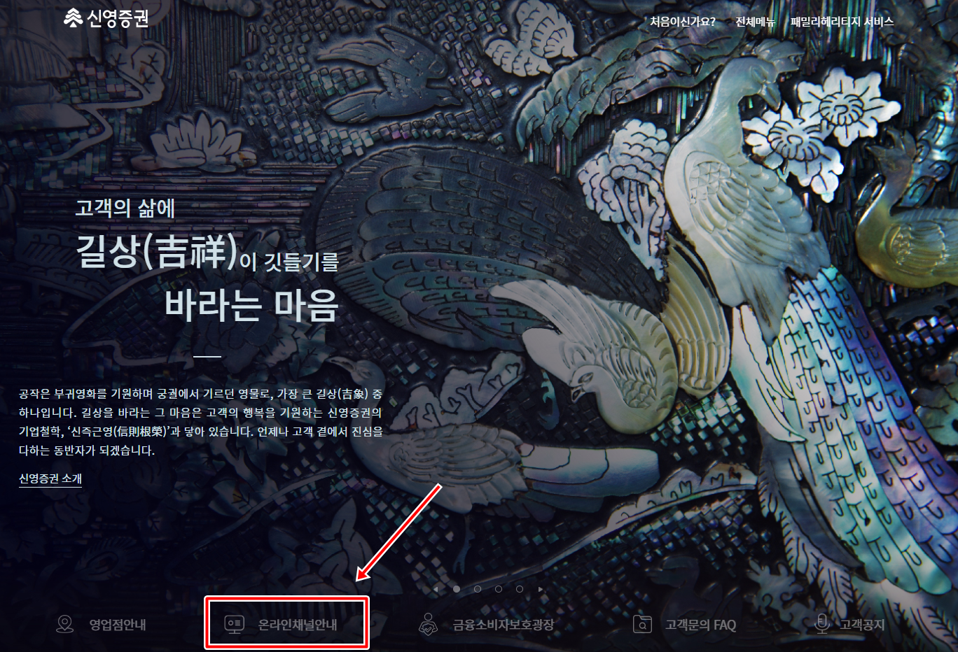 먼저 신영증권 홈페이지로 이동 하셔야 합니다. 홈페이지로 이동 후 하단에 보면 온라인채널안내라고 보이실 겁니다. 이것을 클릭하시면 신영증권의 HTS 다운로드 페이지로 즉시 이동 합니다.