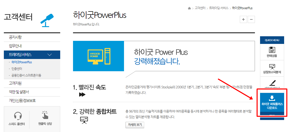 그다음 가장 우측의 하이굿 파워플러스 다운로드 버튼을 눌러 주세요.