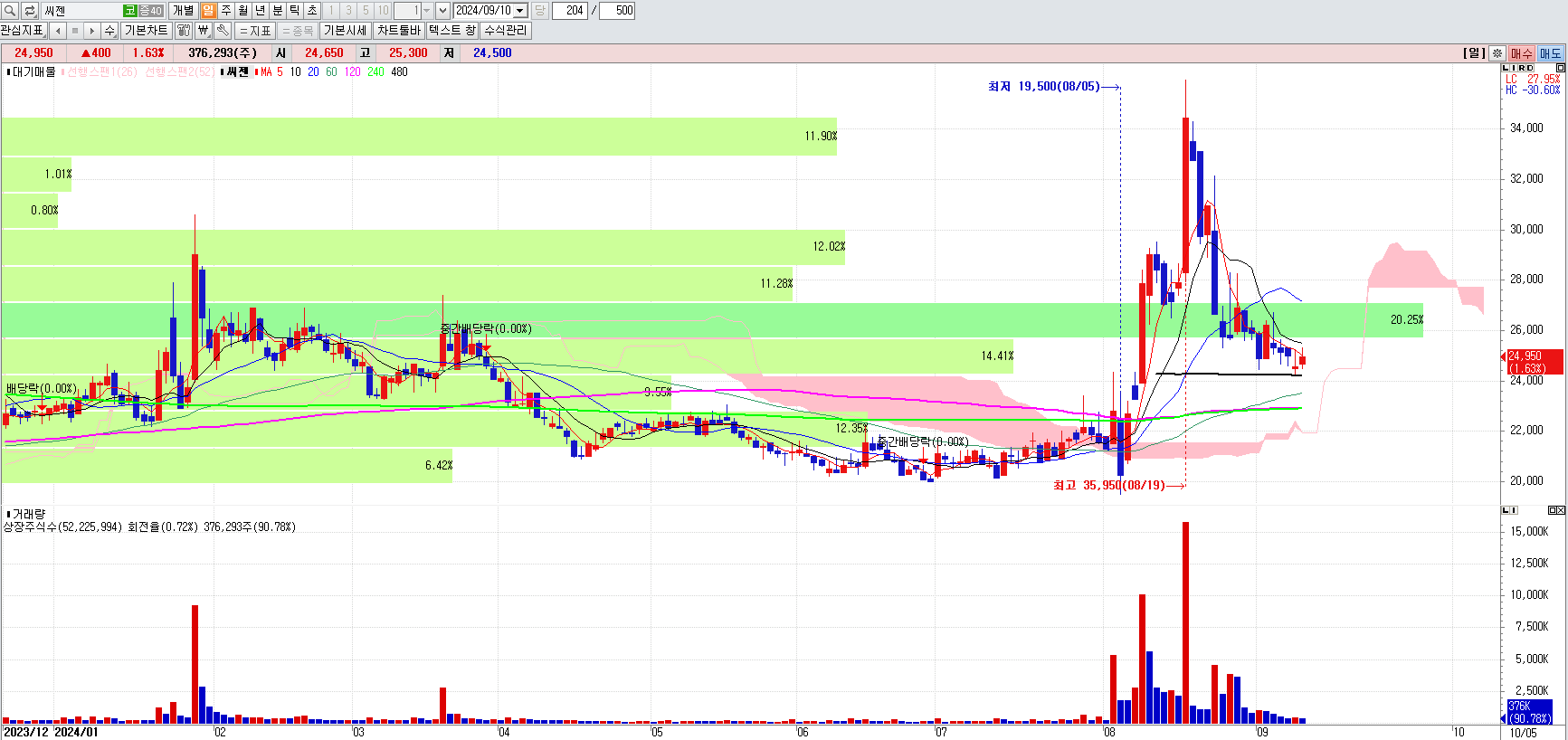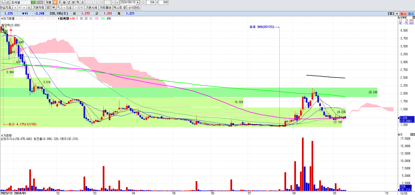 자산대비 부채비율이 매우 낮으나, 코로나19가 활황이었던 때보다 매출액과 영업이익이 크게 감소 하고 있습니다. 시총은 여전히 1조원 이상이며, 상장주식수는 5200만주 입니다.