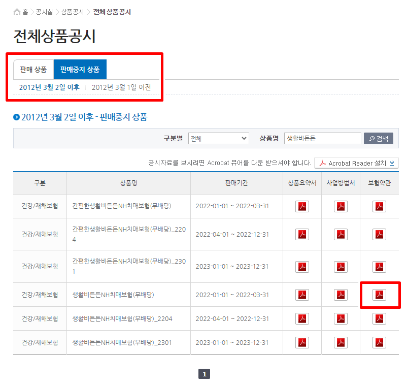 NH농협생명 약관 조회 다운로드
