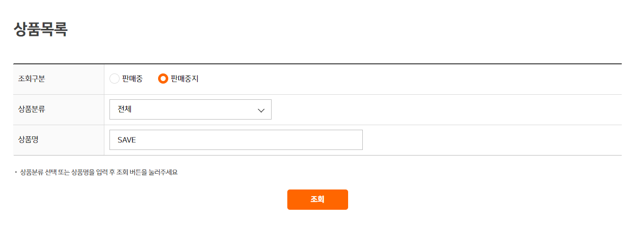 카테고리를 판매중지상품으로 바꾸고요. 위에 검색창에 검색을 해주겠습니다. 아래 그림처럼 따라 하세요.