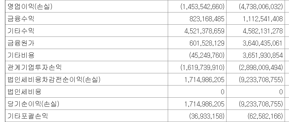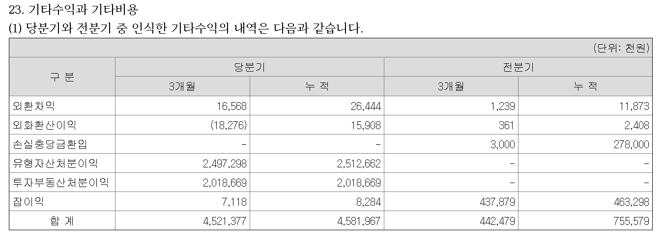 2. 그러나 투자부동산과 유형자산을 팔며 기타수익부분의 수익을 잡아 당기순이익은 흑자로 만들어둠.