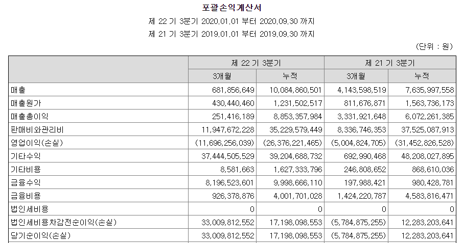 제넥신 포괄손익계산서