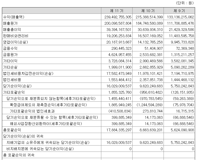 먼저 신흥에스이씨의 재무상태표를 보겠습니다. 11기가 19년도이고요. 우측으로 갈수록 전년도라고 보시면 됩니다. 현금보유액, 기타유동금융자산, 유형자산등이 매년 엄청나게 늘어나는것을 보실 수 있습니다. 그러나 반대로 유동부채도 늘어나고 있는데요. 전기차 수요가 늘어나고 그에따른 부품수급이 모자란탓에 신규시설투자를 늘리면서 부채가 늘어난 구조이므로 크게 문제될 소지는 없어 보입니다. 회사는 18년도에 헝가리공장과 국내 오산공장등의 생산시설을 증대한 바 있습니다. 이때 자금이 꽤 많이 소요 됐습니다. 제조사가 생산시설을 늘린다는것은? 아주 긍정적인 신호 입니다. 반드시 3년안에 영업이익으로 보답할것이고 주가는 그에따라 움직여 줍니다.