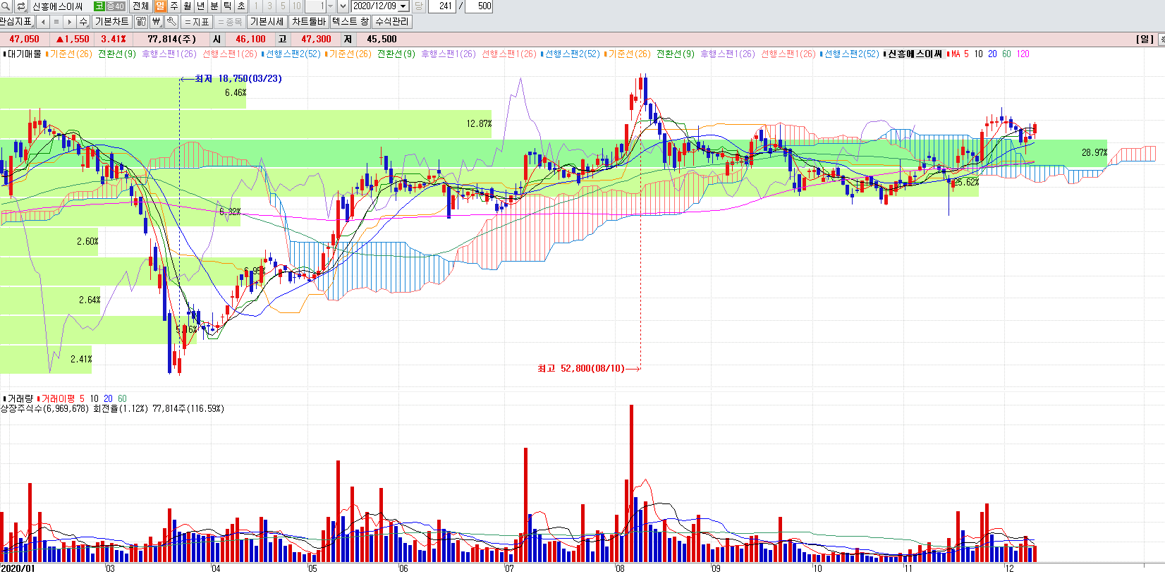 신흥에스이씨는 상장 이후 줄곧 주가는 우상향을 하였지만 코로나19로 인한 한국증시 패닉때 상장때의 주가인 1만원 후반대까지 밀렸다가 다시 우상향중에 있습니다.
