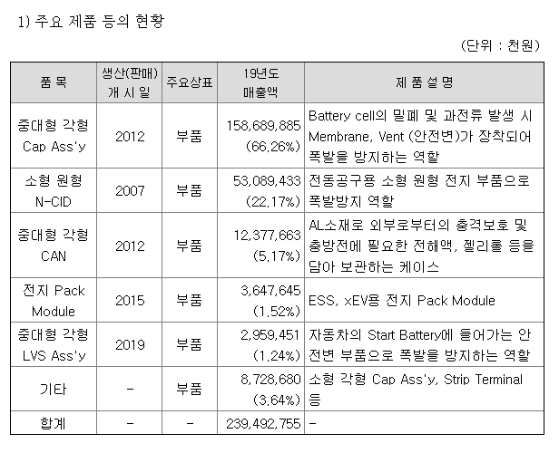 또한 중대형 전기 부품 말고도 소형전지 부품도 매출액의 상당부분을 차지하고 있습니다. 소형 부품은 전기바이크나 전기자전거, 노트북등에 쓰입니다.