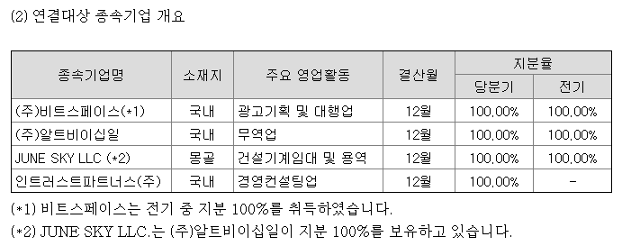 연결기준 실체인 종속회사 리스트 입니다. 광고기획, 무역, 경영컨설팅.. 건설기계임대및 용역. 그 어디에서도 코로나19 백신관련 회사는 찾아볼 수 없습니다. 단지 러시아 의료기기 회사를 인수한것으로 코로나19 관련주일까? 전혀 아니죠. 언론플레이입니다. 종속회사들의 대부분의 업종이 자산에 크게 잡히지 않는, 즉 기계 및 설비, 공장이 필요없는 업종이므로 재무상태표상 자산이 매우 적은것입니다. 사실 뜬구름 잡는 업종들이죠. 전혀 관련이 없는 업종들의 회사만 연결종속회사로 붙혀 놨습니다.