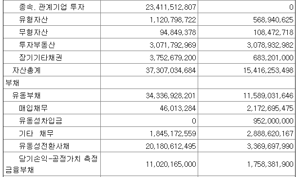 종속, 관계기업에 투자금이 230억원이나 됩니다. 과연 여기서 매출이나 제대로 나올까요? 제조업체인데 유형자산(기계, 공장, 설비등) 11억원 뿐입니다. 투자부동산 30억은 경매로 나와있고요. 전환사채가 200억원, 당기손익 금융부채가 110억원으로 전기말 대비 급격하게 상승하였습니다. 세부적으로 어떤 문제들이 있는지 계속해서 알아 보겠습니다.