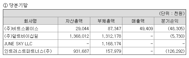 이익이 나고 있는 회사는 없습니다. 비트스페이스의 경우 부채가 자산보다 높고요. 쎌마테라퓨틱스가 현재 투자한 회사들중에 제대로된 회사들이 없는데, 그건 계속 아래에서 계속 보여드리겠습니다.