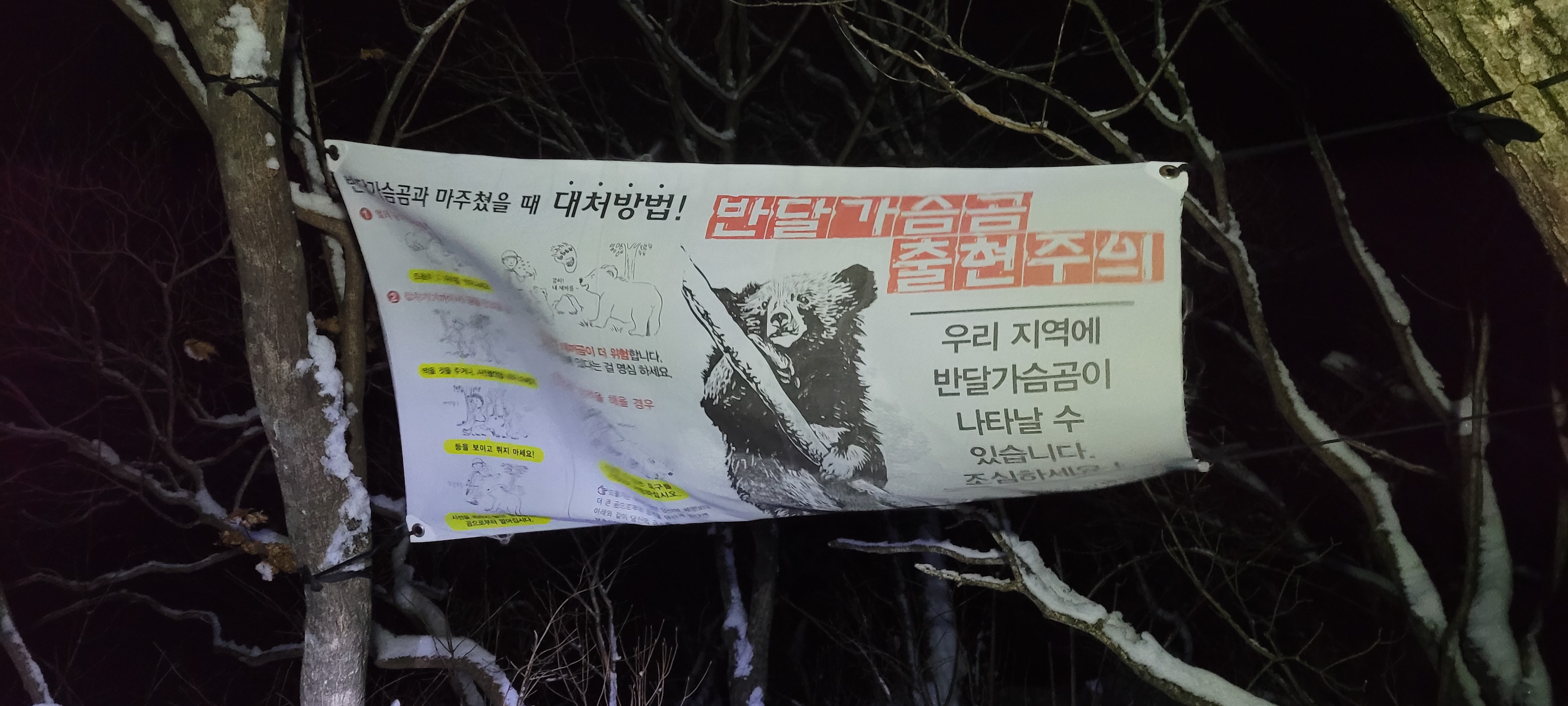 지리산에는 반달가슴곰이 서식을 합니다. 국립공원공단에서 몇년전 몇마리 방생을 했는데 개체수가 엄청나게 늘었다는 군요. 크게 위협적인 동물은 아니지만 자극을 했다가는 사고가 발생할 수 있겠죠?