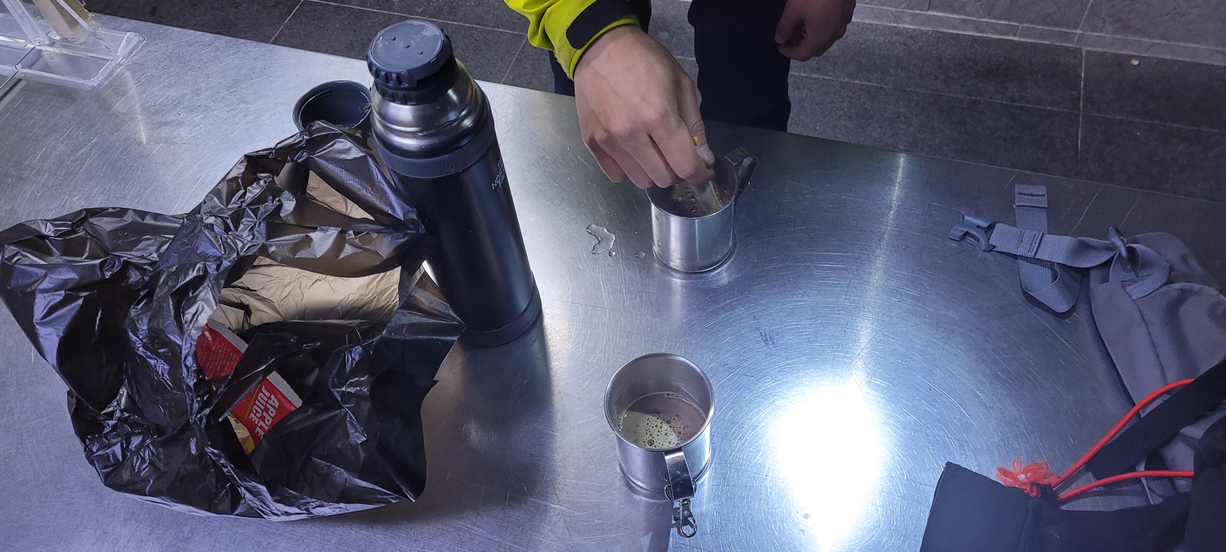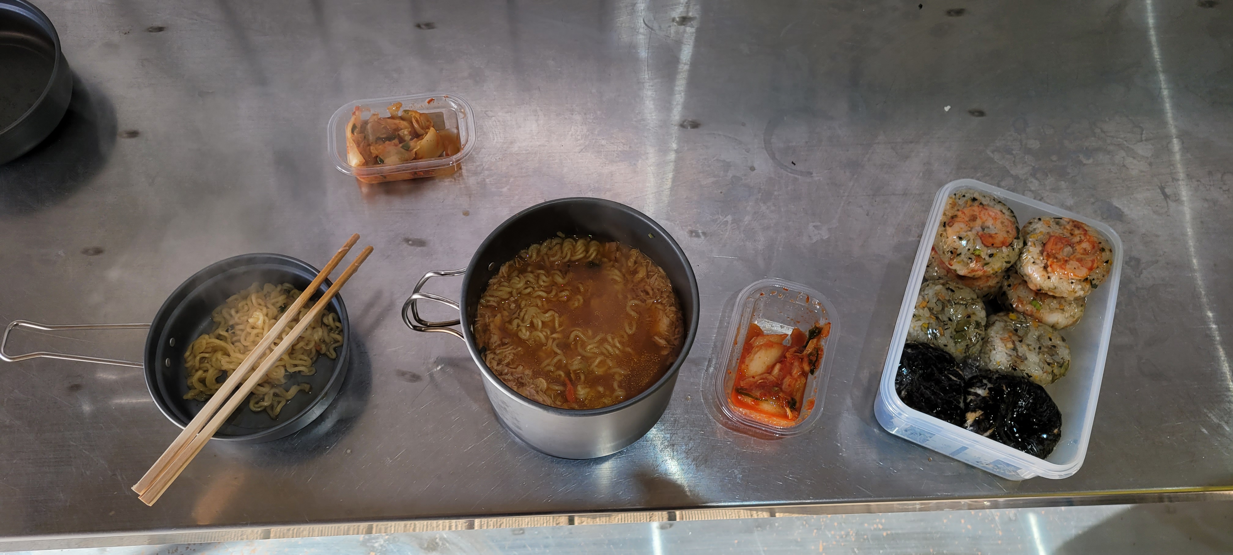 지금 생각해보면 기본이 안됐던것 같습니다. 그렇게 무게를 줄여야 한다는 블로거님들의 글을 보고도 겨울엔 라면이지 라는 생각으로 이소가스에 코펠에 주먹밥까지 지고 올라 왔습니다. 그러나 10km 이상의 눈쌓인 거리를 걷고 먹는 라면 맛은 말해 뭐하나요. 정말로 꿀맛 이었습니다. 여자친구가 전날 고생하며 준비해 준 주먹밥 맛은 최고 였습니다.