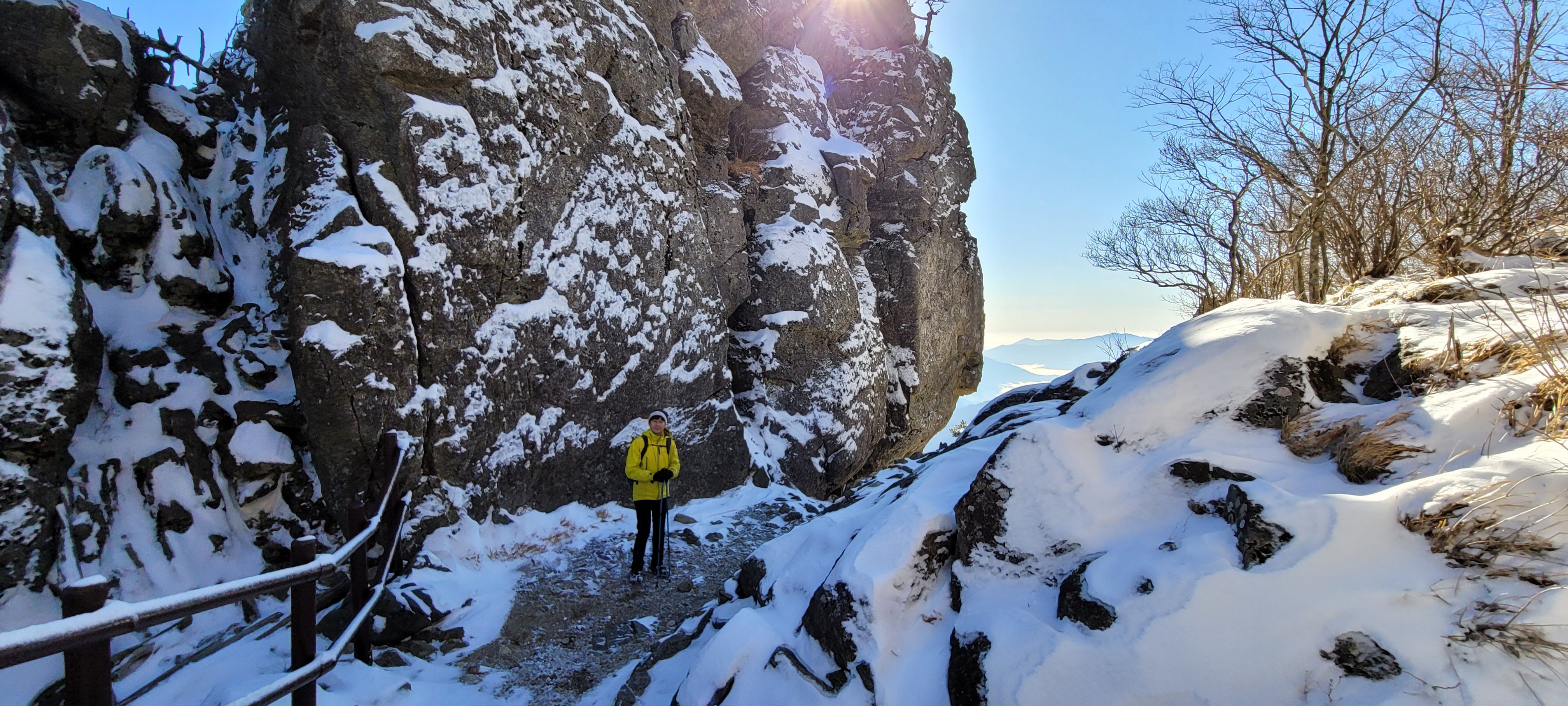 눈덮인 산이 보고 싶다면 덕유산 구천동으로 오르는 코스 또는 태백산, 소백산 상고대를 보시는것을 추천 드립니다. 종주는 여름, 가을에 하는걸로...