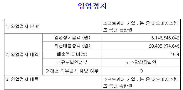 포비스티앤씨의 어도비 영업권이 어느정도였길래 거래정지까지 됐을까?