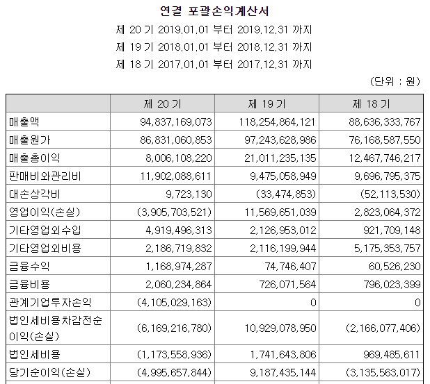 매출액은 3년평균(17년~19년) 약 1천억원이었으며 연결기준으로만 본다면 19년도만 -39억원의 영업적자를 냈을 뿐 이 전에는 흑자기업 이었습니다.