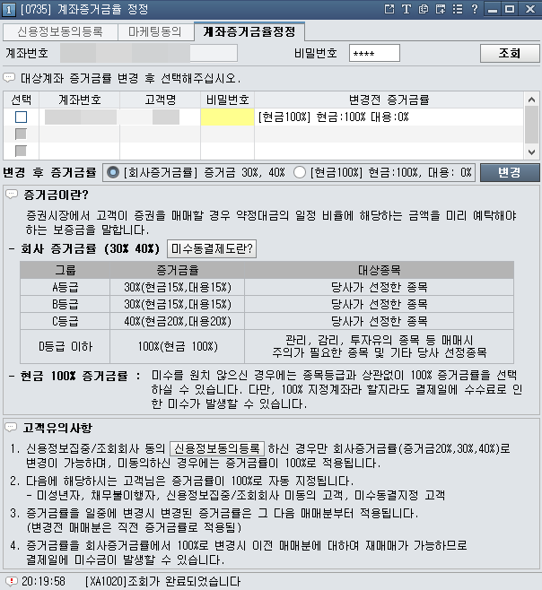 주식계좌 신용미수 안되게 설정 방법(증거금률 100%설정)