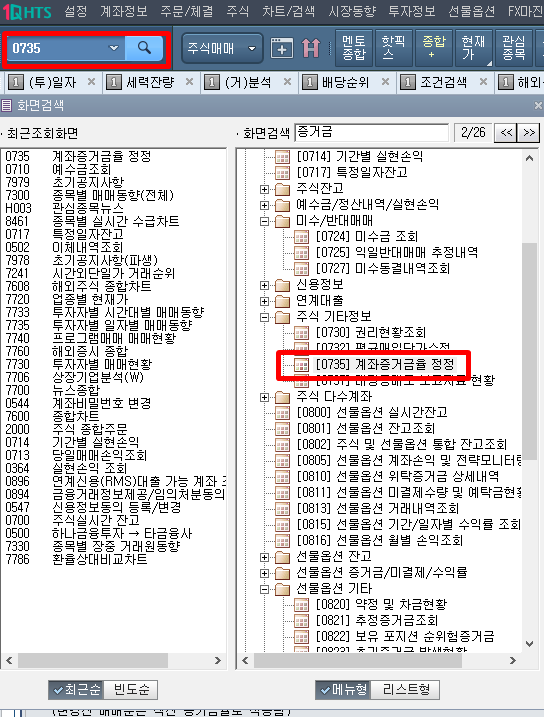 다음은 HTS에서 주식 증거금률 100% 설정하는 방법 입니다.