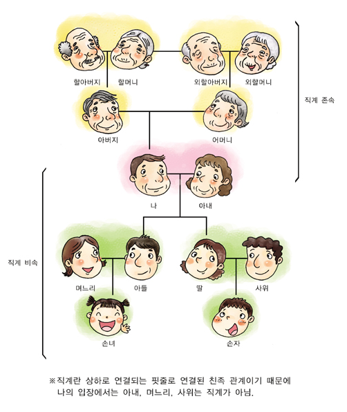 이 둘을 합쳐 '직계존비속' 이라 부르는 것 입니다.