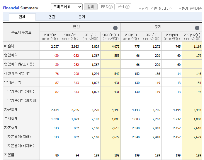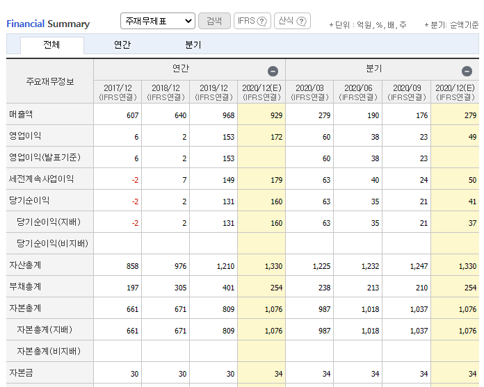 5G관련 대장주 케이엠더블유 재무요약