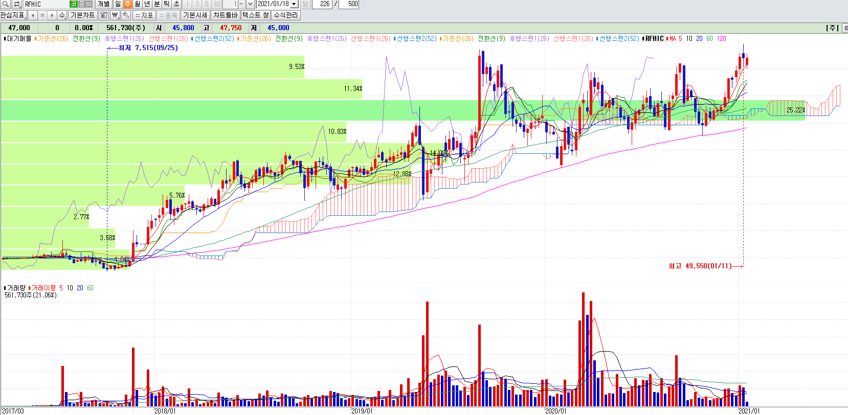 5G관련주 테마주 RFHIC 주봉챠트