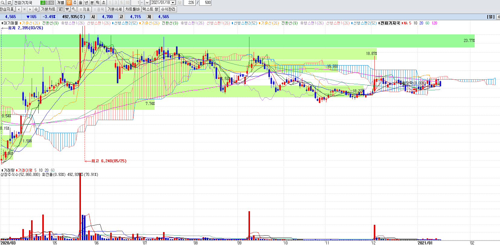 5G관련주 전파기지국 역시 바닥권에서 큰 상승 후 저점을 높이며 우상향중에 있는데 일봉챠트를 보시면 이평선이 응집이 되면서 세력의 물량테스트인 윗꼬리 양봉이 자주 나와주고 있는 모습 입니다. 이런 챠트는 절대 끝난 챠트가 아닙니다.