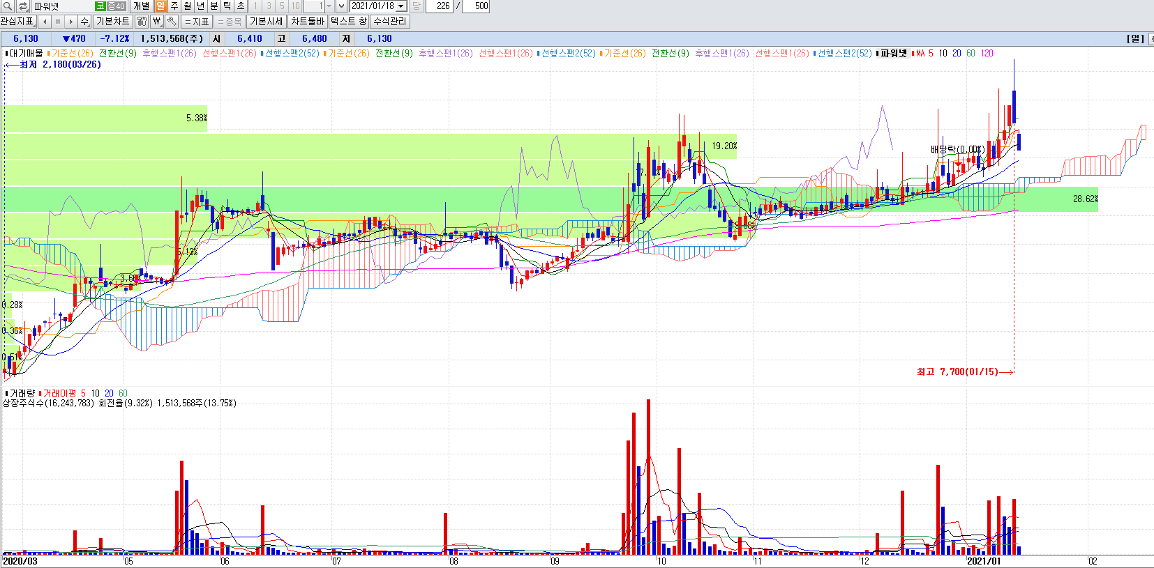 5G관련주 수혜주 테마주 파워넷 일봉챠트