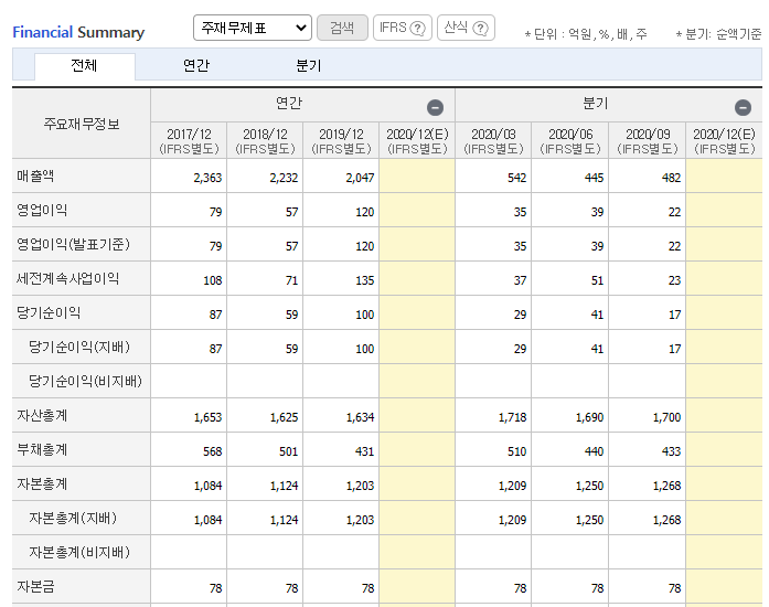 동화기업의 재무요약 입니다. 17년도 대비 영업이익이 꾸준한 감소세이긴 합니다만 매출액이 늘어나고 있어 향후 영업이익이 자연스레 올라가지 않겠나 보고 있습니다.