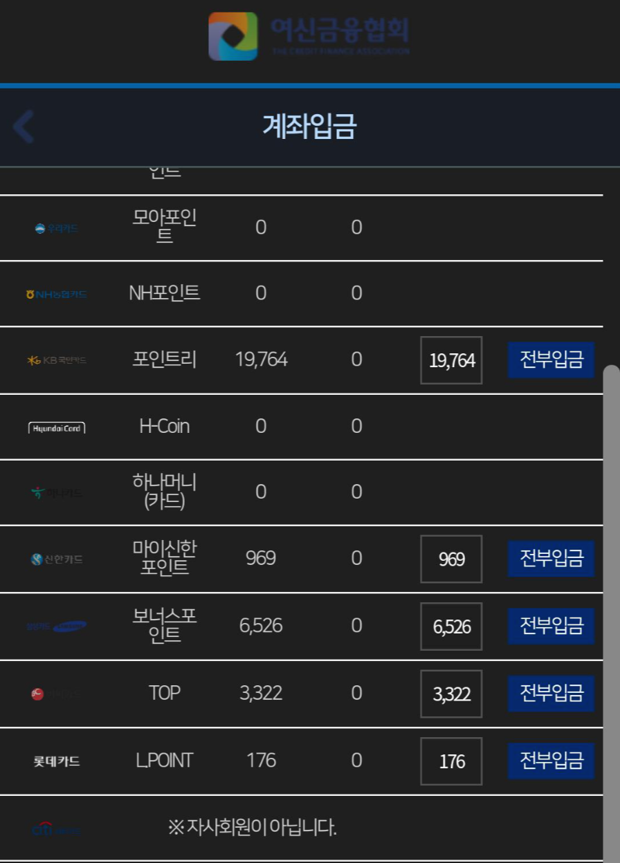 여신금융협회 카드포인트 통합조회 & 계좌입금 언제나 함께하면 행복합니다. 든든한 신뢰의 최고 파트너가 되겠습니다.