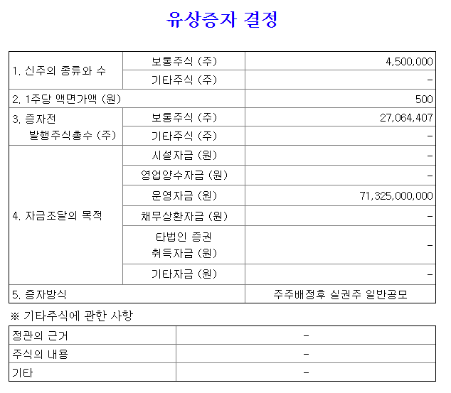 다원시스는 현재 상장주식수 2700만주 인데, 이번 유상증자를 통해 450만주를 추가 발행하는것이며, 주주들을 대상으로 배정하게 됩니다. 자금조달의 목적은 회사 운영자금이며 그 규모는 현재 예정발행가로 계산할 시 약 710억원 가량 되겠습니다.