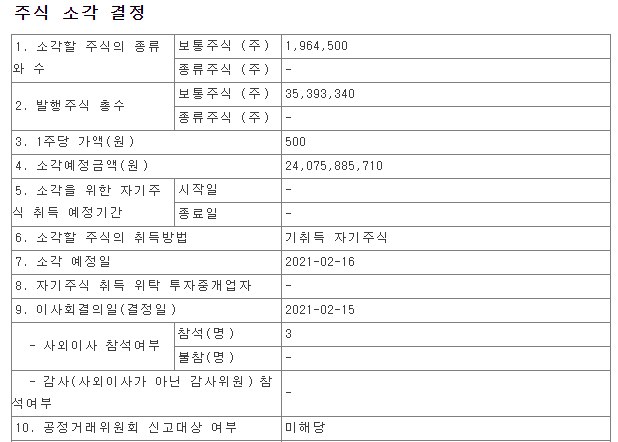 내가 투자한 회사가 갑자기 공시로 '주식소각결정' 을 하는 경우가 가끔 있습니다. 맞습니다. 아주 가끔입니다. 자주 했으면 좋을텐데 자주 할 이유도 명분도 없습니다. 왜냐하면 오로지 회사의 의지로 하는것이기 때문이죠. 자기주식소각을 자주했으면 좋을텐데 라고 한 이유는 당연히 주식소각결정 공시는 호재이기 때문 입니다. 왜일까요?