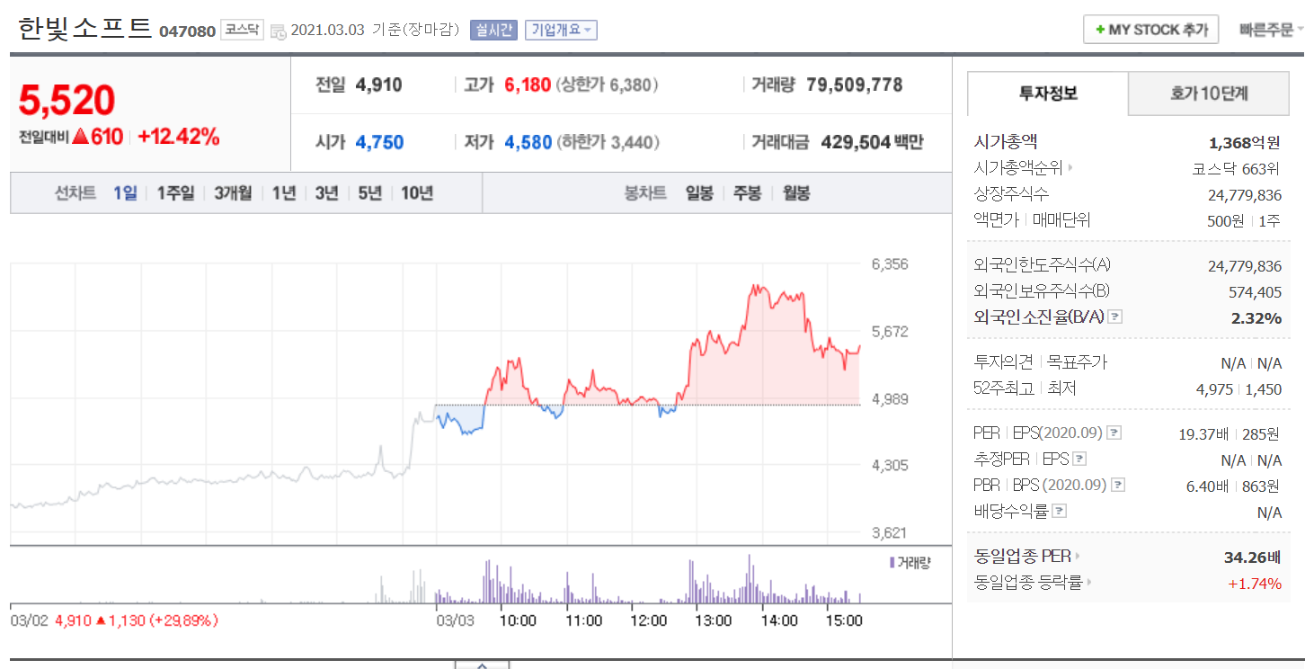 메타버스 관련주 수혜주 대장주로 부각중인 한빛소프트 입니다. 한빛소프트는 종속회사인 한빛드론으로 중국의 세계적 드론인 DJI를 국내에 유통중에 있으며, 과거에도 이때문에 VR, AR 관련주들이 수혜를 받을 때 VR관련주로써도 상승한 이력이 있습니다. 회사가 영위하는 3차원 세계에서의 나의 케릭터를 키우는 게임과 한빛드론의 컨텐츠(VR) 로 인하여 시장에서 메타버스 관련주 수혜주 대장주로 부각중에 있는것으로 보여집니다.