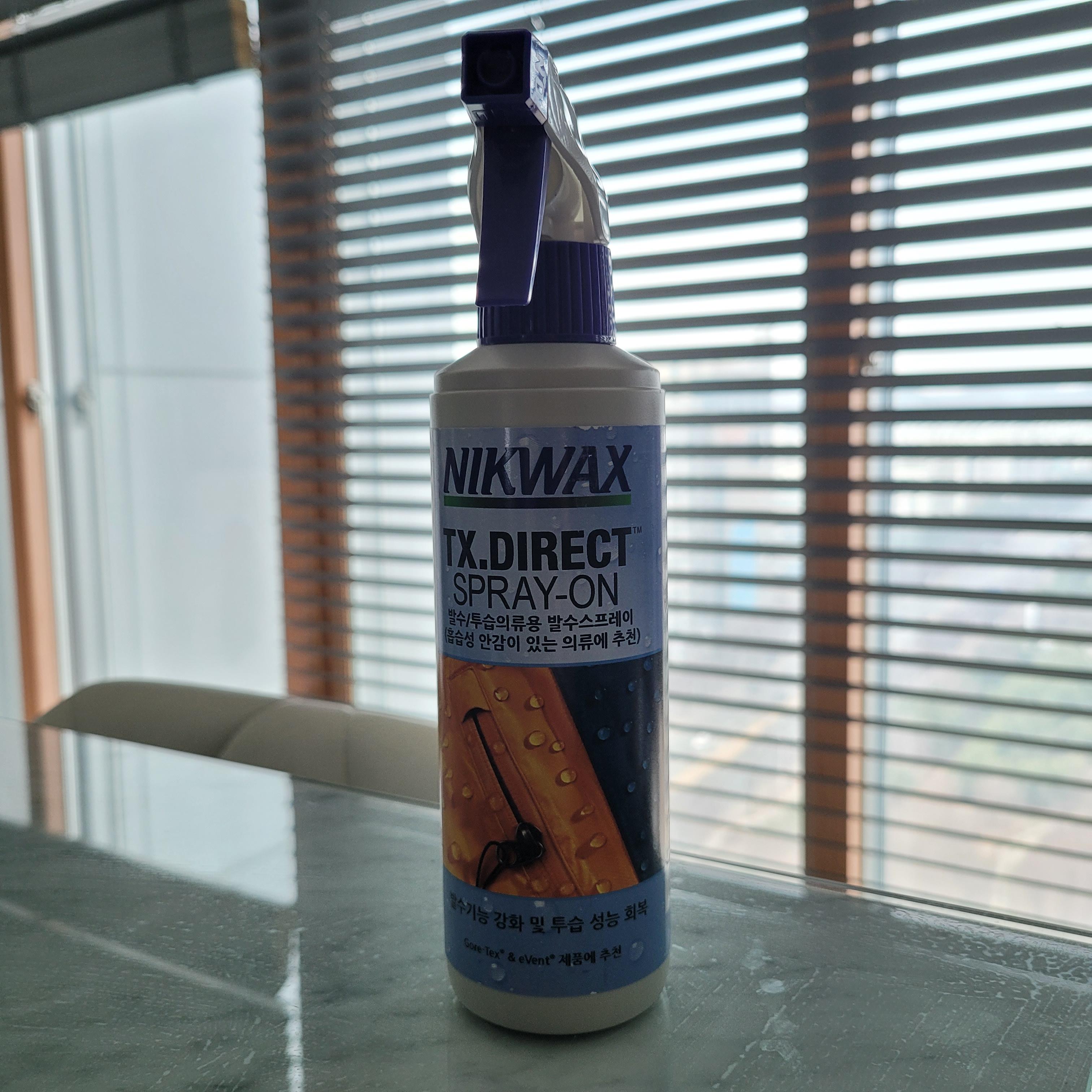 닉왁스에서 파는 물에 풀어서 사용하는 고어텍스 세제와 물에 풀어서 사용하는 고어텍스 발수코팅제가 있지만 저는 사용이 비교적 간편한 닉왁스 발수코팅제 스프레이형을 샀습니다. 세탁을 하고 나시면 물이 뚝뚝 떨어질 정도로 자켓 사이사이에 물이 고여있을텐데요. 이는 발수력이 살아있다는 증거이며, 탈수를 약하게 했기 때문 입니다. 이제 그늘진 곳이나 화장실로 가셔서 옷걸이에 고어텍스 자켓을 걸어두시고 닉왁스 발수코팅제를 양껏 뿌려줍니다. 과도하게 뿌려주는게 좋습니다.