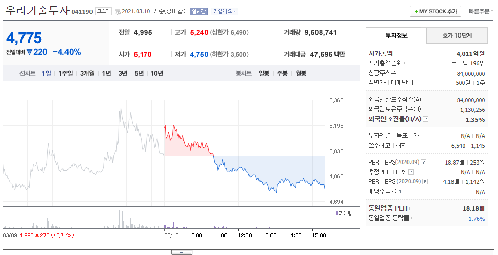 비트코인 관련주 대장주 우리기술투자는 가상화폐 거래소인 업비트를 운영하는 두나무의 지분을 8% 가지고 있어 시장에서 비트코인 관련주 대장주로 부각되고 있습니다. 시가총액 4천억원대로써 재무적인 문제는 없으나 최근 매출액과 영업이익율이 폭팔적으로 늘어나고 있습니다.