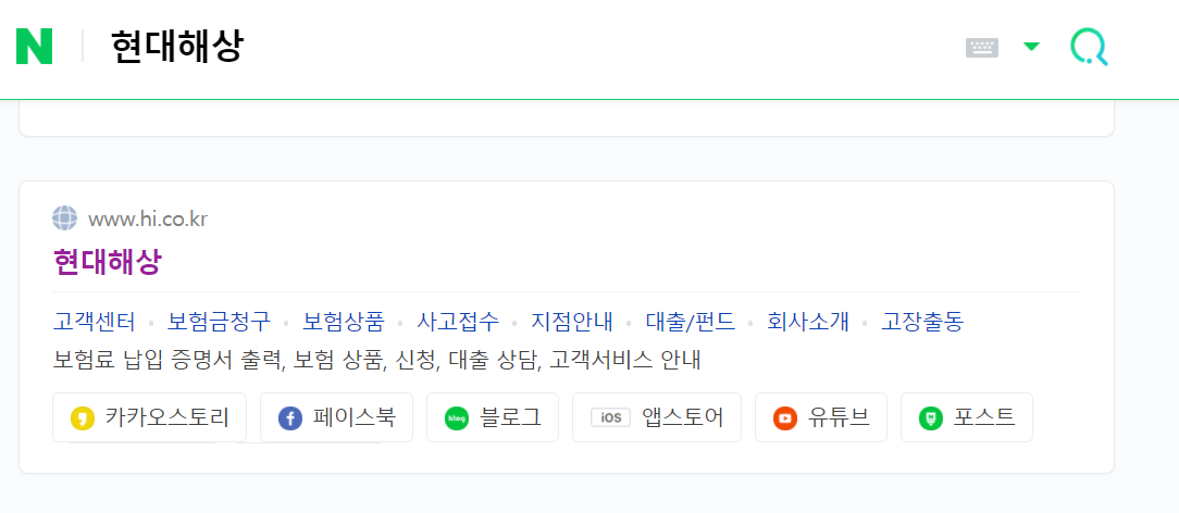 먼저 검색창에 현대해상을 검색해 줍니다. 그럼 위와 같이 현대해상 홈페이지가 나올텐데요. 클릭해 줍니다.