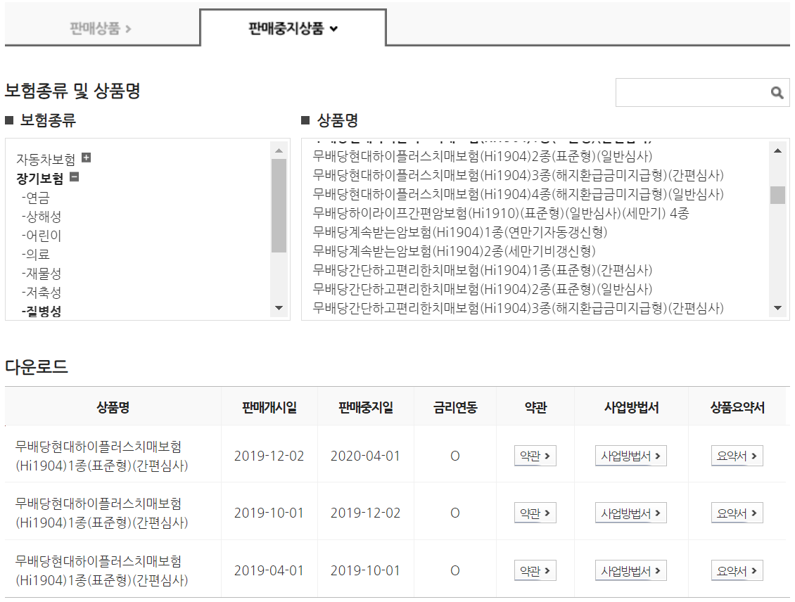 위와 같이 해당 보험의 상품명을 찾고 내가 가입한 날이 판매게시일과 판매중지일 사이에 있는 보험 약관을 찾아 보시면 됩니다. 더불어 사업방법서와 상품요약서도 있으니 같이 확인해보시면 좋겠네요.