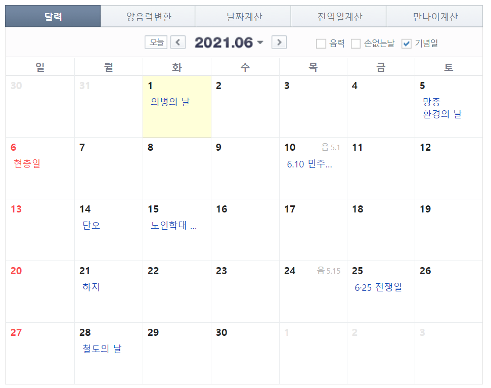 6월 달력에는 따로 배당기준일과 배당락일을 표기하기 않았습니다. 여러분들 스스로 생각해 보시라고 말입니다. 3월과 비교해서 보시면 정답이 보이실 겁니다. 분기배당락일 계산하기 참 쉽죠?