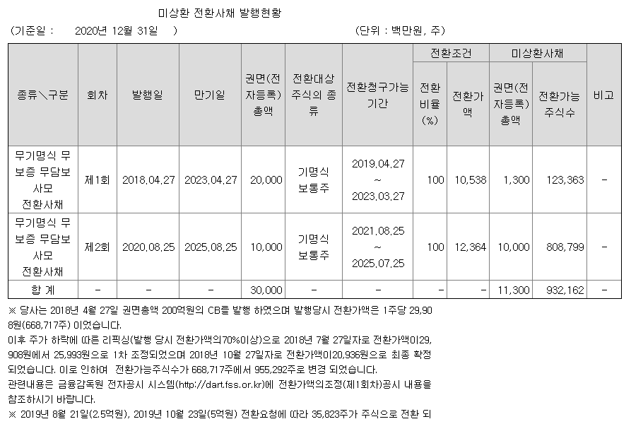 엠플러스 미상환 전환사채 내역