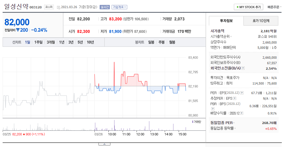 파평윤씨 윤석열 관련주로 분류되고 있는 일성신약은 대표이사 윤석근씨가 파평윤씨 종친회라는 설로 시장에서 파평윤씨 윤석열 관련주 테마주로 부각되고 있으나 아직은 정확한 파평윤씨가 아닌 설 입니다. 또한 상장주식수가 260만주 뿐이기 때문에 엄청난 품절주로써 거래량이 없는게 흠입니다. 투자에 다소 신중하셔야 겠습니다.