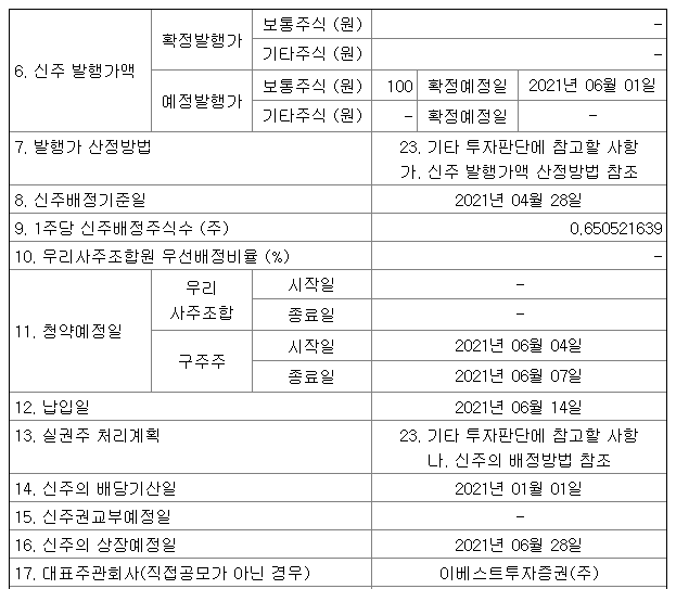 판타지오 유상증자 청약예정일은 21년 6월 4일부터 7일(이틀간) 입니다. 그리고 청약대금의 납입일은 21년 6월 14일 입니다. 때문에 최소 이 날 전까지는 내가 보유하고 있는 판타지오 신주인수권 * 확정발행가가 계좌에 현금으로 있으셔야만이 청약에 참여할 수 있는것 입니다. 판타지오 신주인수권의 입고일과 활용방법에 대해서는 계속하여 설명 드리도록 하겠습니다.