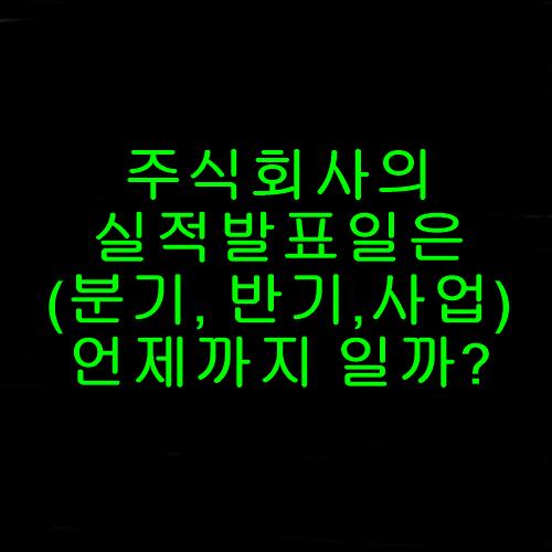 이 글을 읽으러 들어오신 분들 아주 잘 오셨습니다. 지금부터 이 글을 읽으시면 앞으로 내가 투자한 회사에 분기, 반기, 사업보고서의 제출기한. 즉 실적발표일이 언제까지인지 정확히 아실 수 있을것이며 주변 지인들에게도 분기, 반기, 사업보고서의 중요성에 대해 명쾌하게 설명하실 수 있는 지식을 얻게 되실 겁니다. 축하 드립니다.