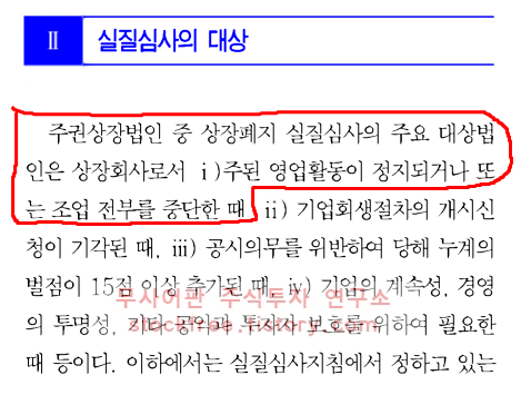 영업정지가 왜 상장폐지 실질심사 대상인가?