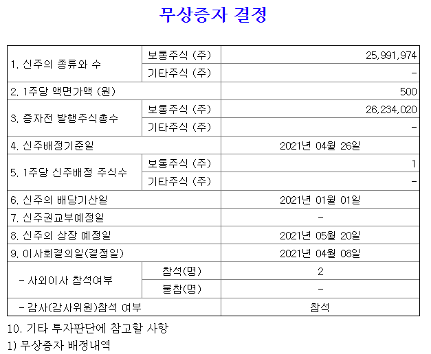 무상증자는 자본의 증가 또는 감소 없이 주식발행초과금을 재원으로 하는 증자 방식이기 때문에 호재라고 볼 수 있습니다.