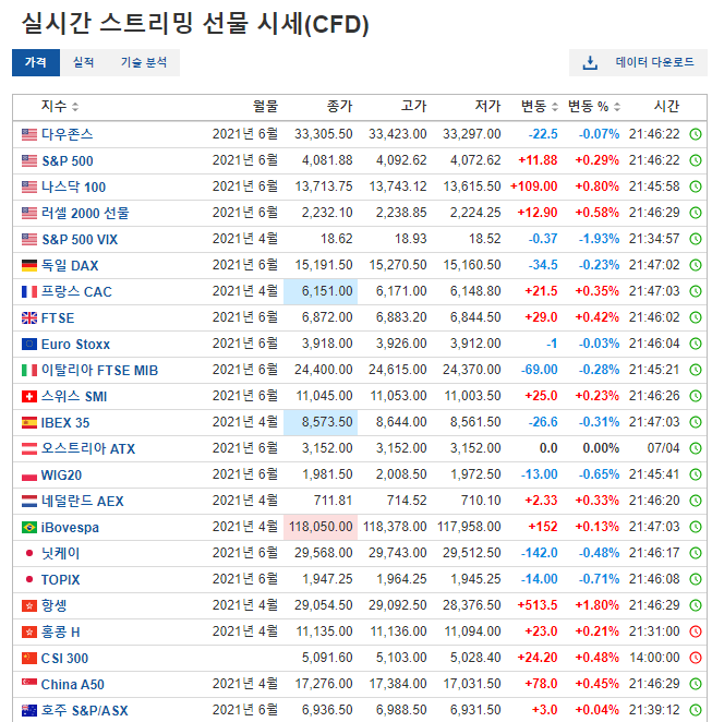 해외증시 해외선물 전세계증시 실시간 확인하는 사이트 바로가기