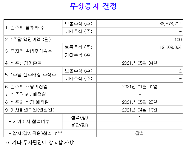 모든 무상증자 일정이 끝나게 되면 신주의 상장예정일은 21년 5월 25일 입니다.