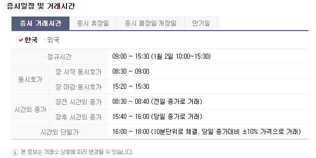 한국증시 거래시간