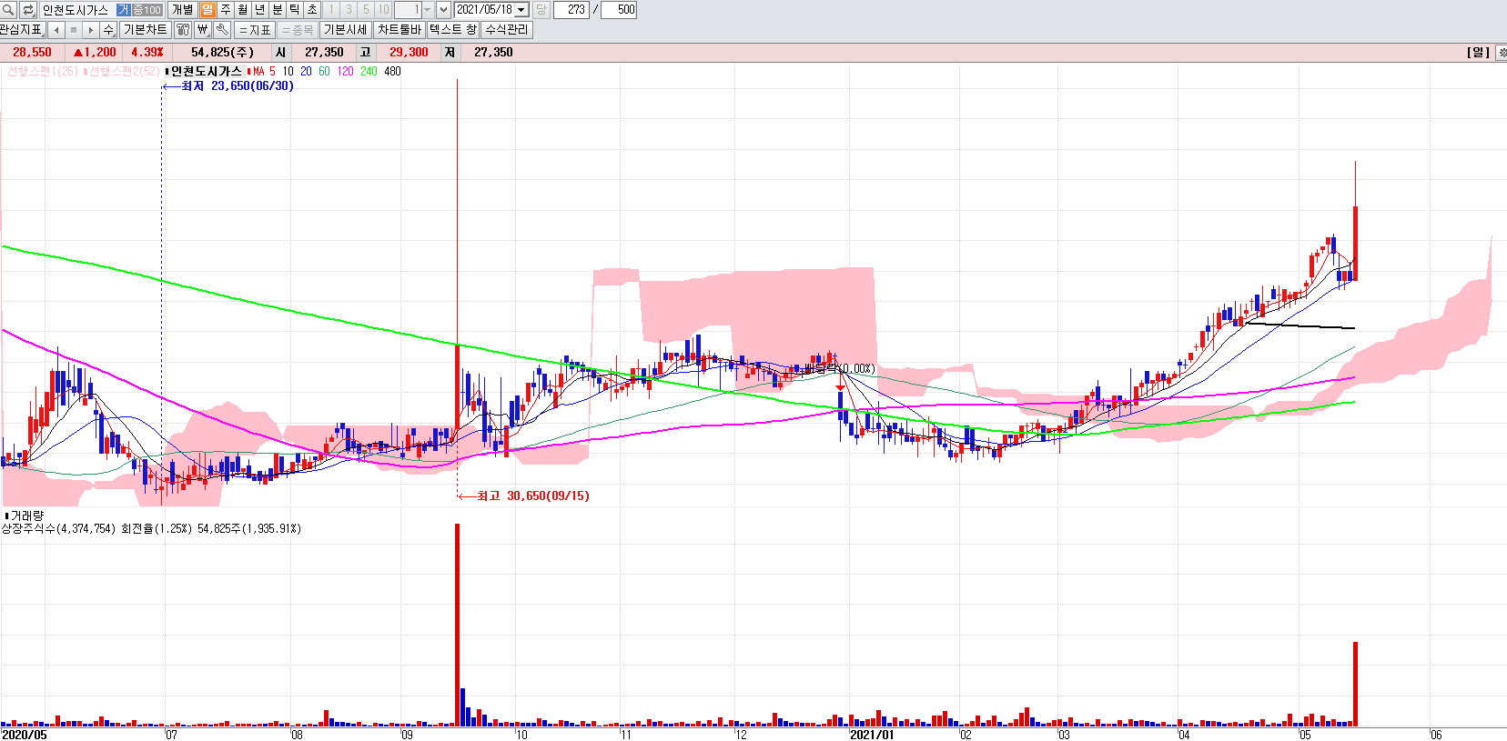 오늘 천연가스 가격급등에 따른 도시가스 관련주들의 수혜가 예상이 되는데요. 서울가스의 대규모 수급동반 상한가 말고도 기타 다른 관련주들도 좋은 시세를 보여주었습니다. 서울가스가 오늘 처음으로 출발 했으니 다른 도시가스 관련주들도 이후 좋은 흐름이 예상이 되는데요.