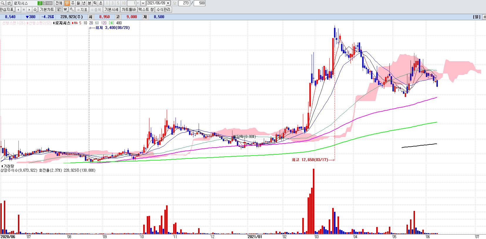배당성향은 1.4%를 보여주고 있으며 적자 없는 흑자 회사 입니다. 올해 2월 유통주식 한바퀴를 돌리는 거래량이 발생되었으며 이후 저점을 높이며 꾸준히 상승중에 있습니다.