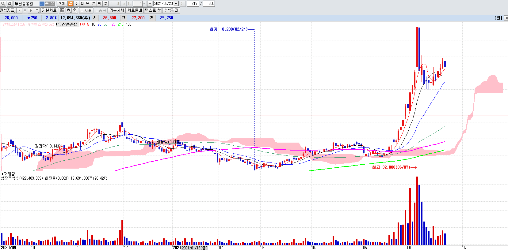 원전관련주 두산중공업은 시총 10조원대의 코스피 상장사로써 배당금은 지급하고 있지 않으며, 액면가 5천원에 상장주식수 4억주의 대형주 입니다.
